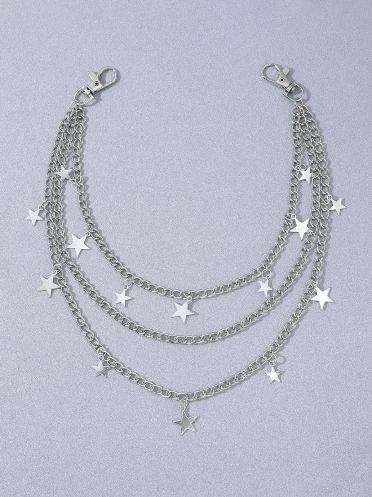 Add sparkle to your fit with the Y2K Star Charm Chain from Y2K Stylee. This unisex metal chain belt brings Y2K streetwear to life with layered chains and standout star charms — perfect for clipping onto jeans, skirts, or cargo pants for that loud but polished finish.