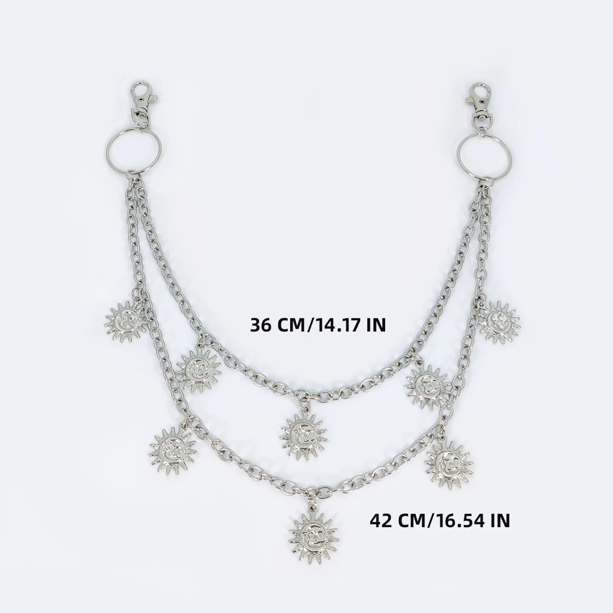 Turn your jeans into a statement with the Y2K Punk Jeans Keychain from Y2K Stylee. This unisex metal belt chain features geometric accents and crescent moon details, giving it a gothic streetwear feel that fits perfectly with cargos, low-rise denim, and punk looks.
