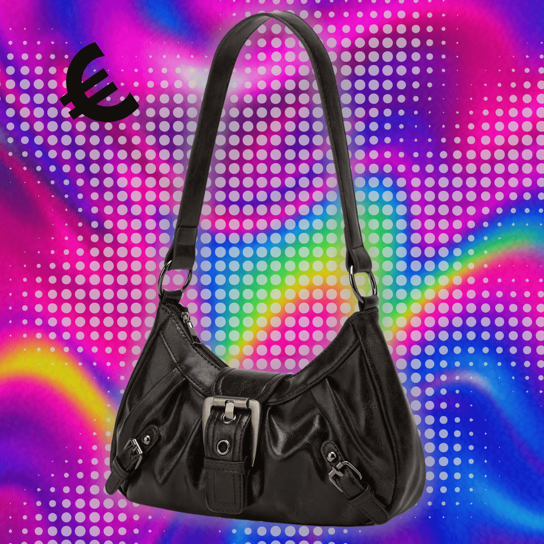 This edgy and elegant half-moon bag fuses vintage attitude with modern utility. The pleated design and rivet details bring a rebellious Y2K energy, while the soft PU leather adds a luxe finish. Whether you're headed to a night out or styling your daytime fit, this armpit bag levels up your look with just the right amount of grunge.